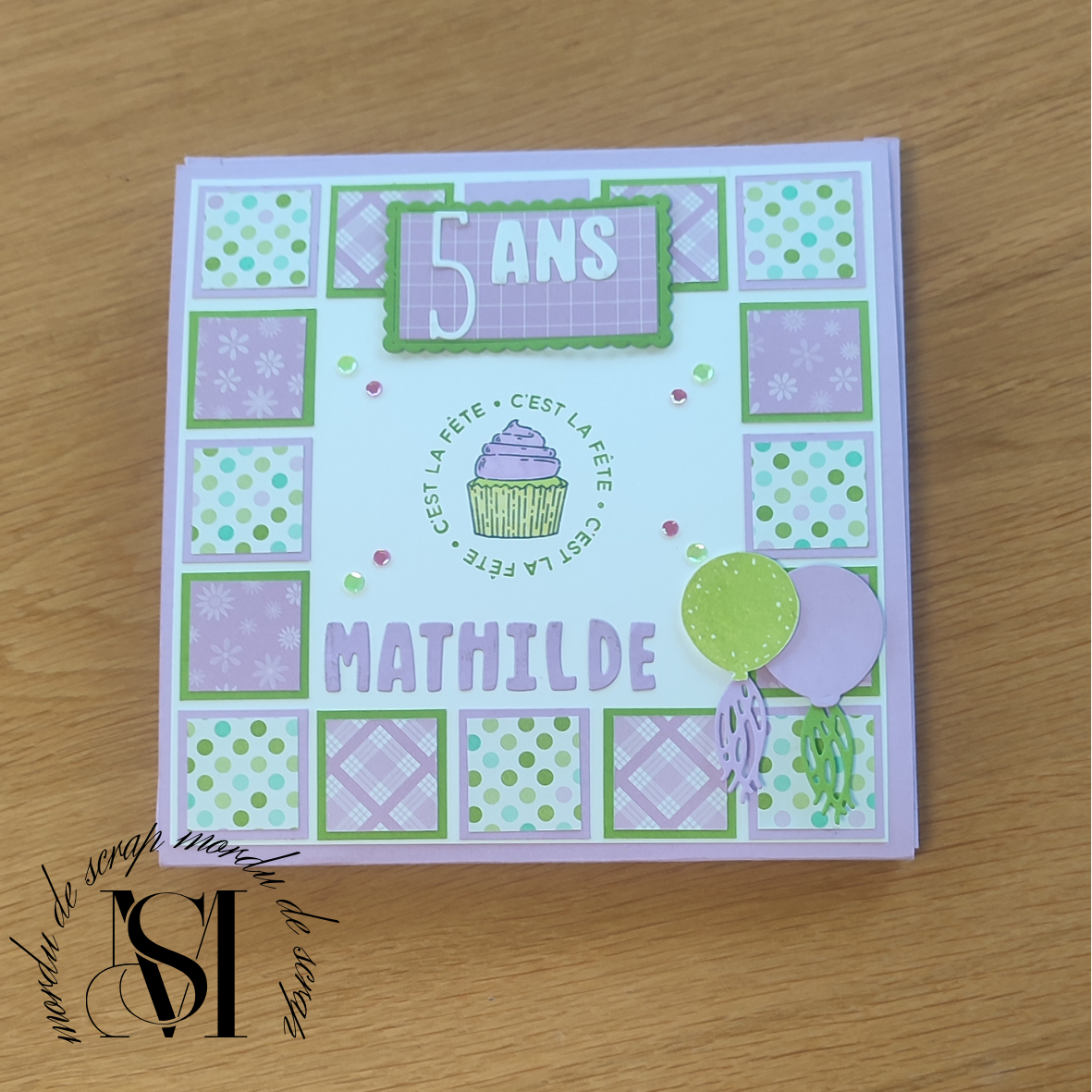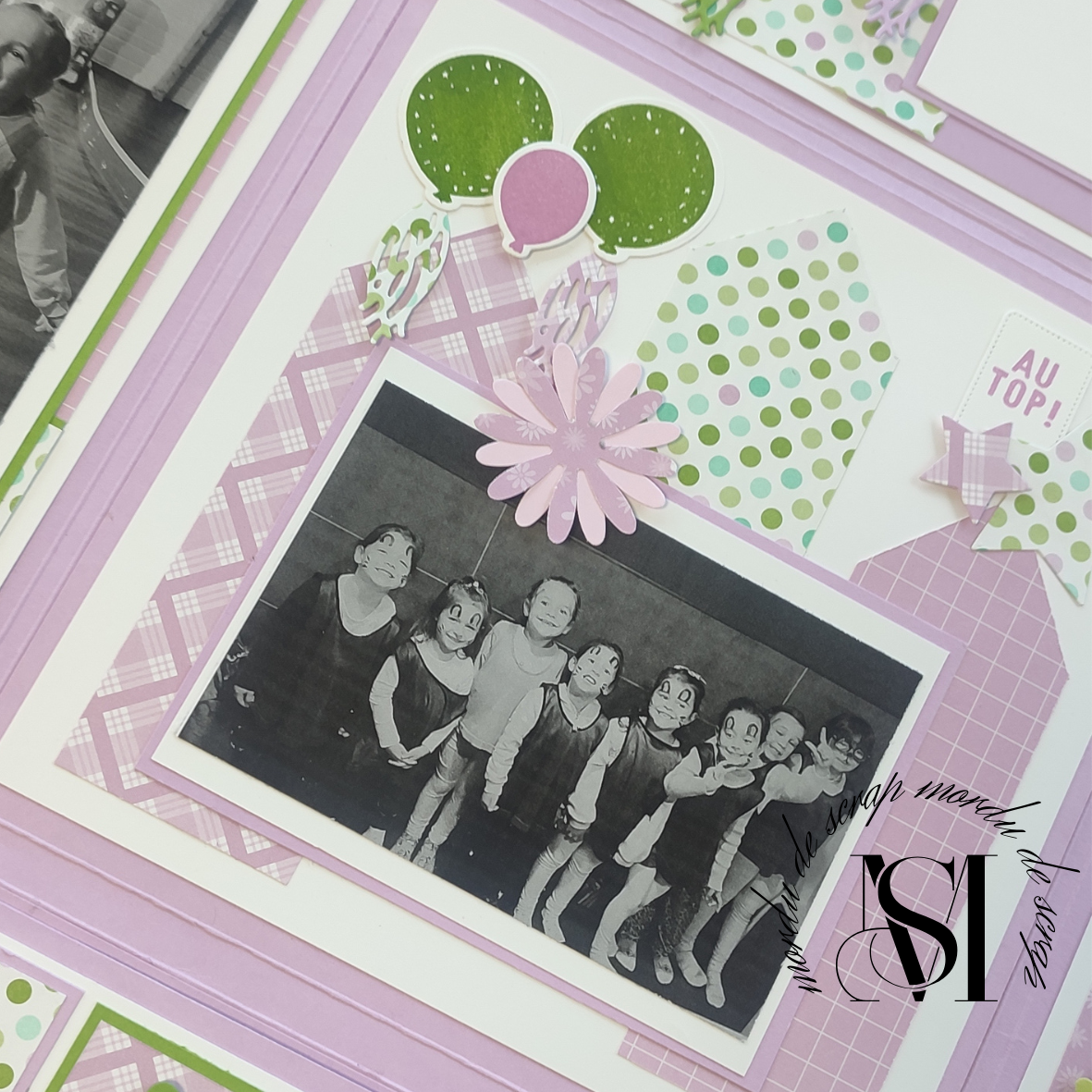 Ma fille me demandais depuis plusieurs semaines un album pour immortalisé son premier anniversaire avec toutes ses copines. Son seul impératif : du violet et du vert. Ni une ni deux, je me suis mise à la tâche avec les coloris Freesia en fleurs et Grenouille Guillerette.