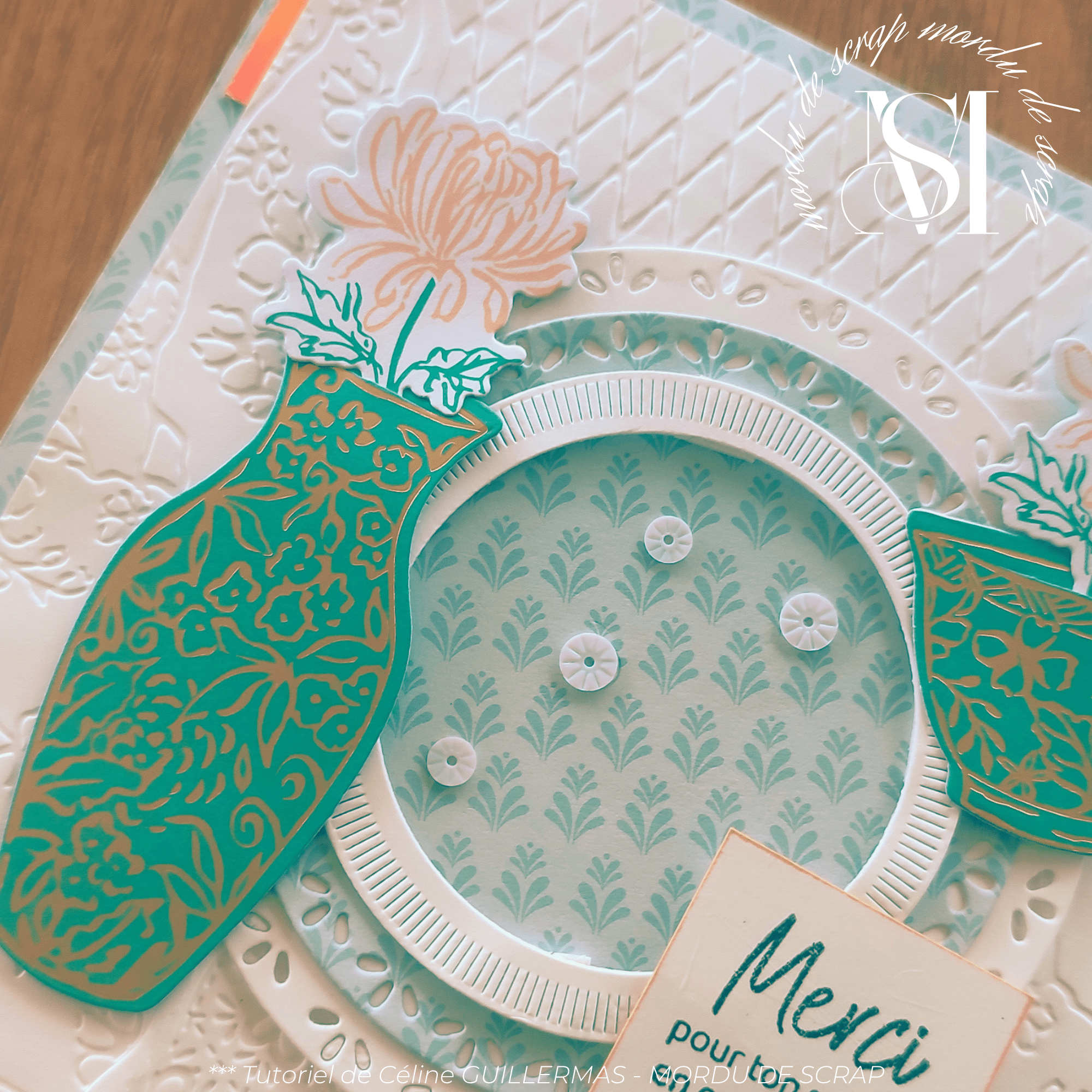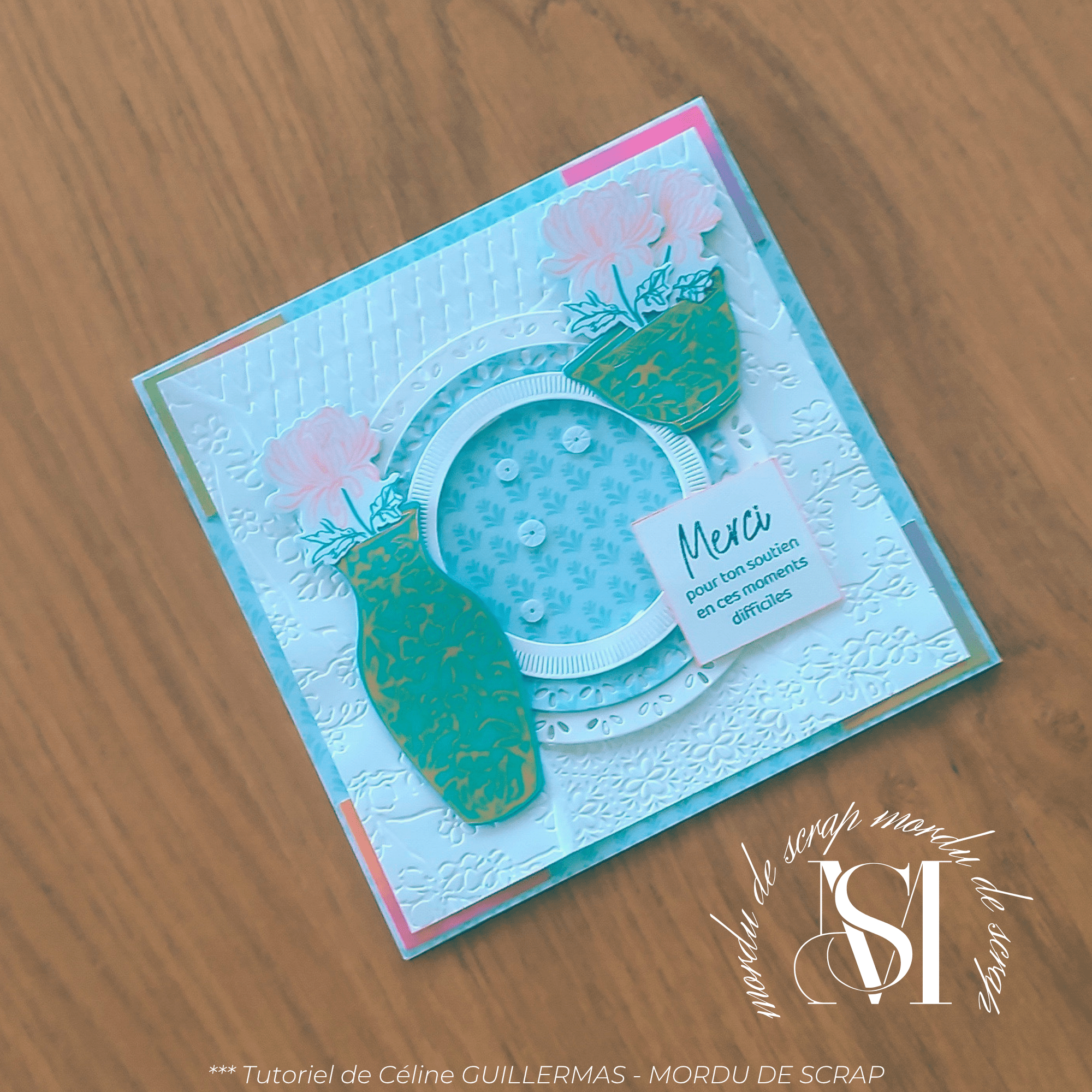 Hier je t’ai proposé un joli petit mini album étoile. Tu peux retrouver le tutoriel ICI. Aujourd’hui, c’est une jolie carte au format carré que je te propose : Simple mais efficace.