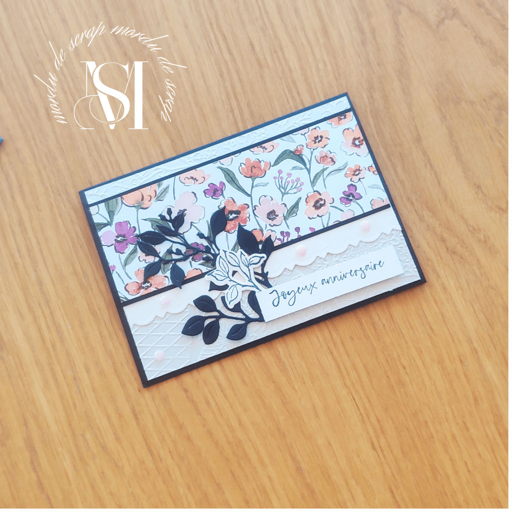 Une carte toute simple, mais qui fait son petit effet avec ses motifs embossés, un peu de feuillage, un petit message et le tour est joué.