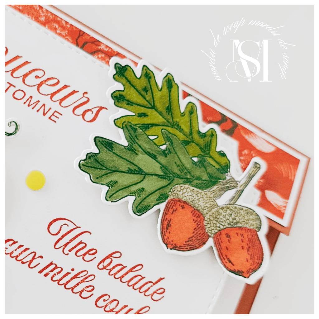 J’ai utilisé le lot Automne Ambré avec ces petites citrouilles et feuilles de chêne trop mignonnes à coloriser.