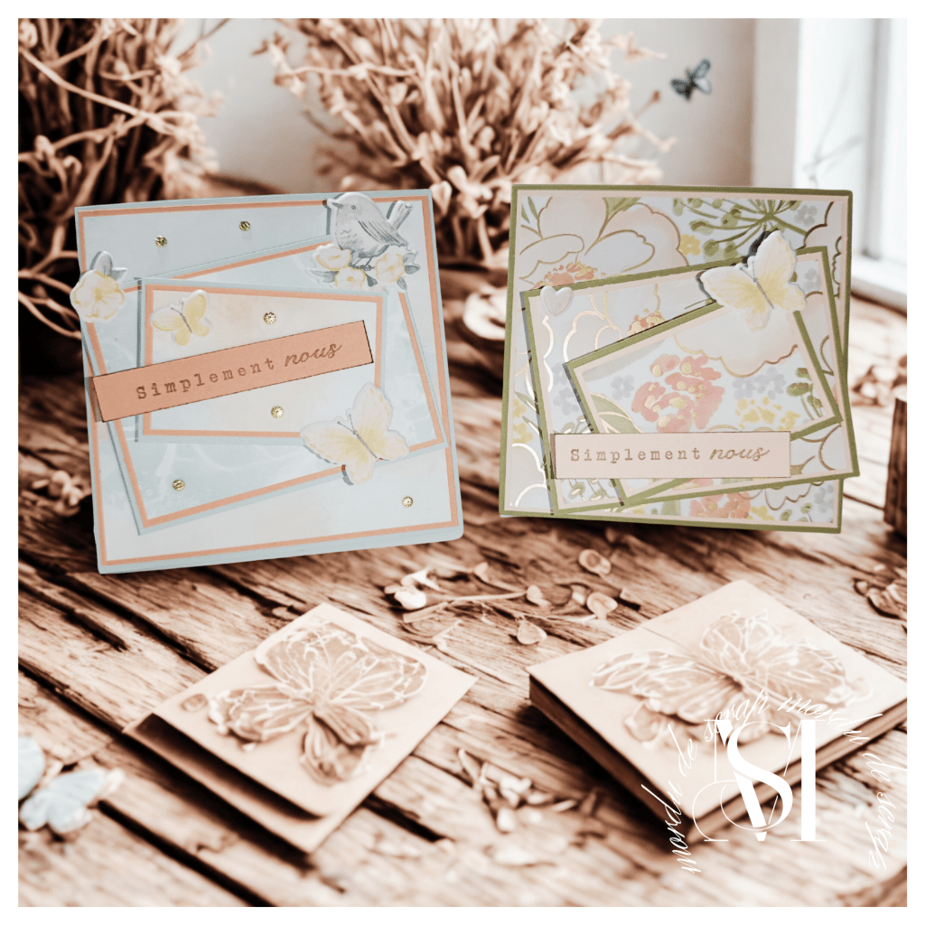 J’ai opté pour 2 versions complètement différentes : l’une avec un papier très chargé Charmant et splendide et la seconde avec un papier très aérien.