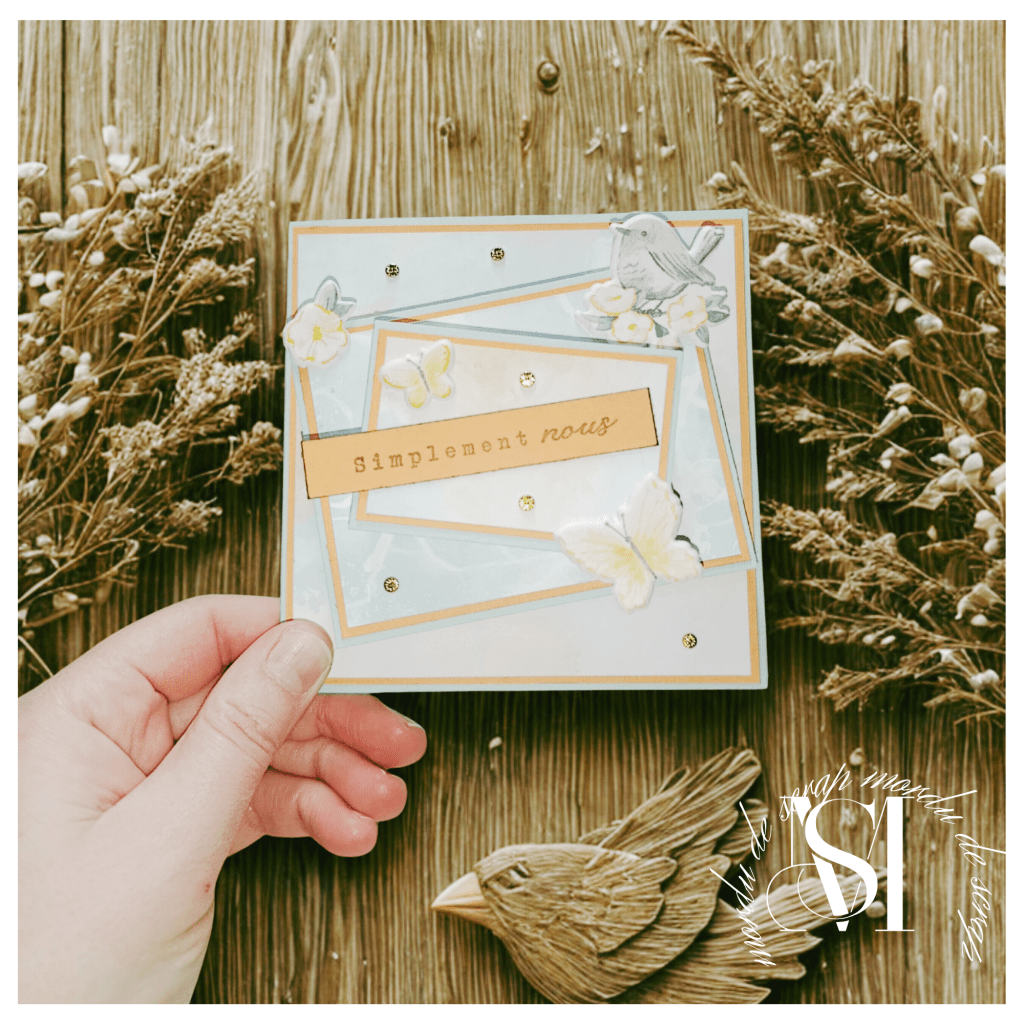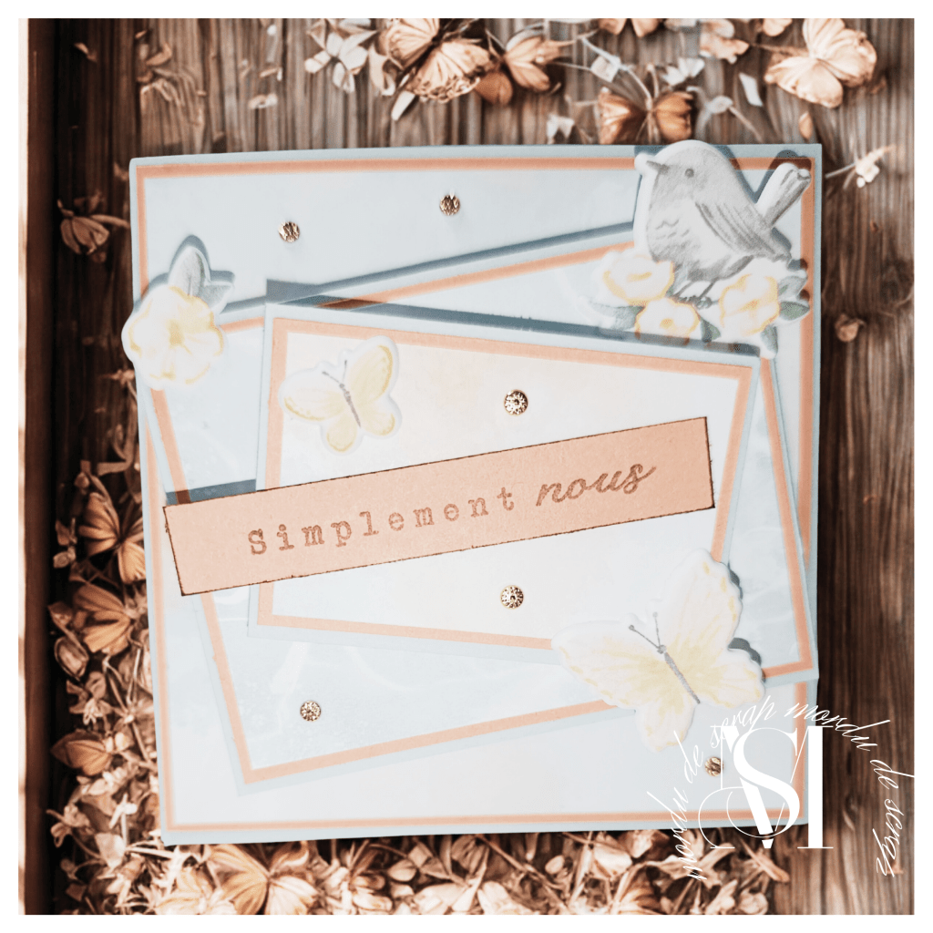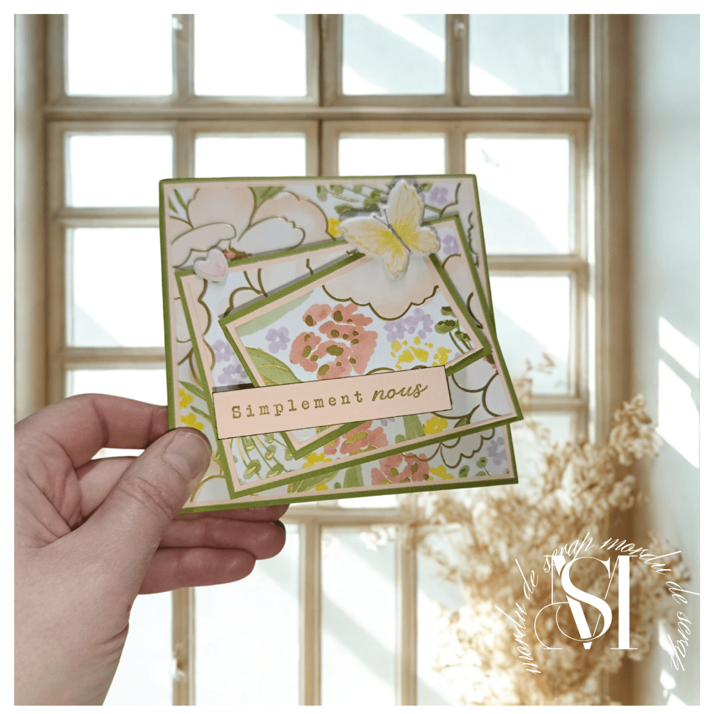 Une carte qui tourne pour dévoiler un double message cela te tente ? Quelques petits plis par par là et hop le tour est joué. La collection Billet doux est constitué d’un bon nombre d’étiquettes que nous pouvons ajuster dans nos créations. Un grand tamponnage trône au centre de notre carte. J’adore ce genre de…