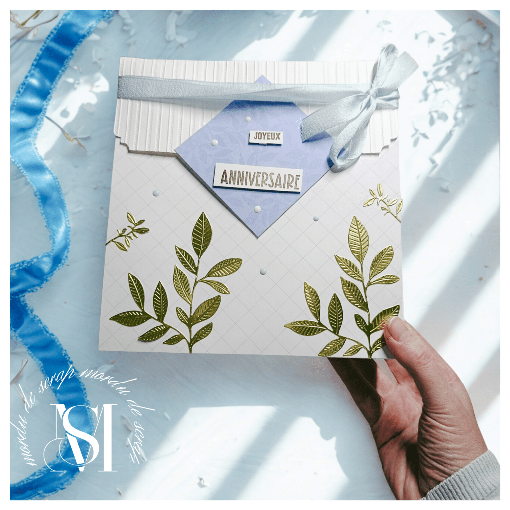 Enfin pour contraster les coloris très épurer, j’ai ajouter un carré de DSP de la collection de couleur Secret Marin afin d’apporter un peu de caractère à cette création.