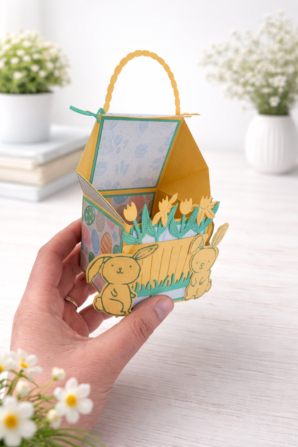 Aujourd’hui je te dévoile ma dernière idée créative : une boîte de Pâques très originale. LE PROJET Pâques arrive à grands pas… et aujourd’hui je te partage un joli panier de gourmand qui peut aussi devenir une superbe décoration de table. La chasse aux oeufs n’attend plus que toi ! Ce panier délicatement orné de … Lire la suite DECORATION DE PAQUES EFFET POP’UP