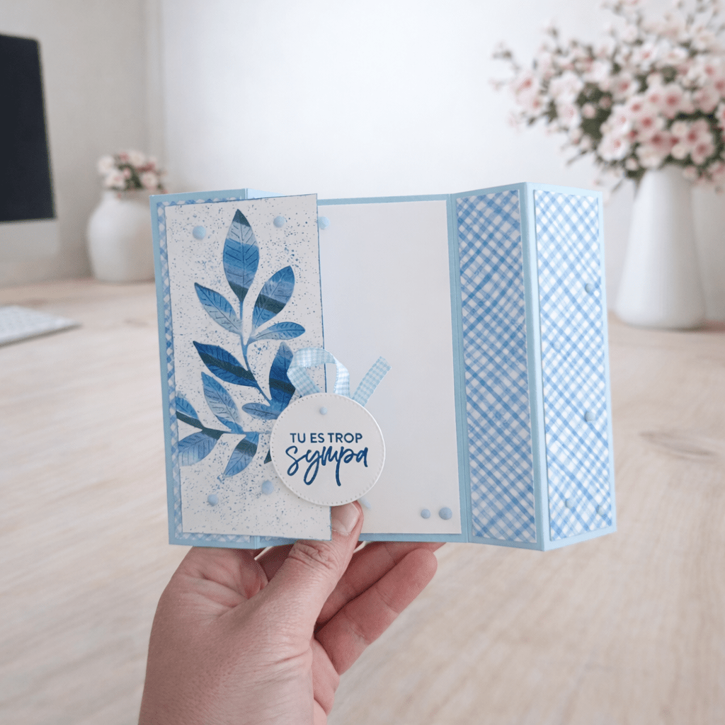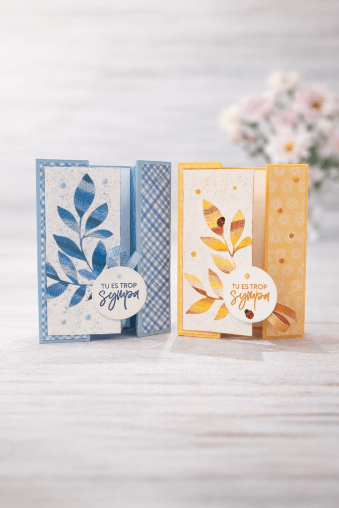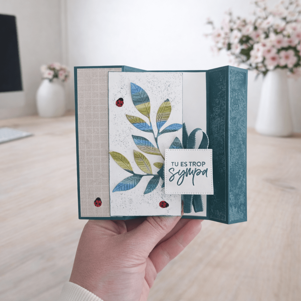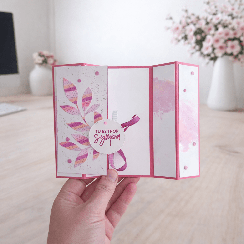 Cette carte se distingue avec ses plis sur les côtés, crée un bel effet pop-up qui donne du volume et met en valeur l’ensemble de la composition.