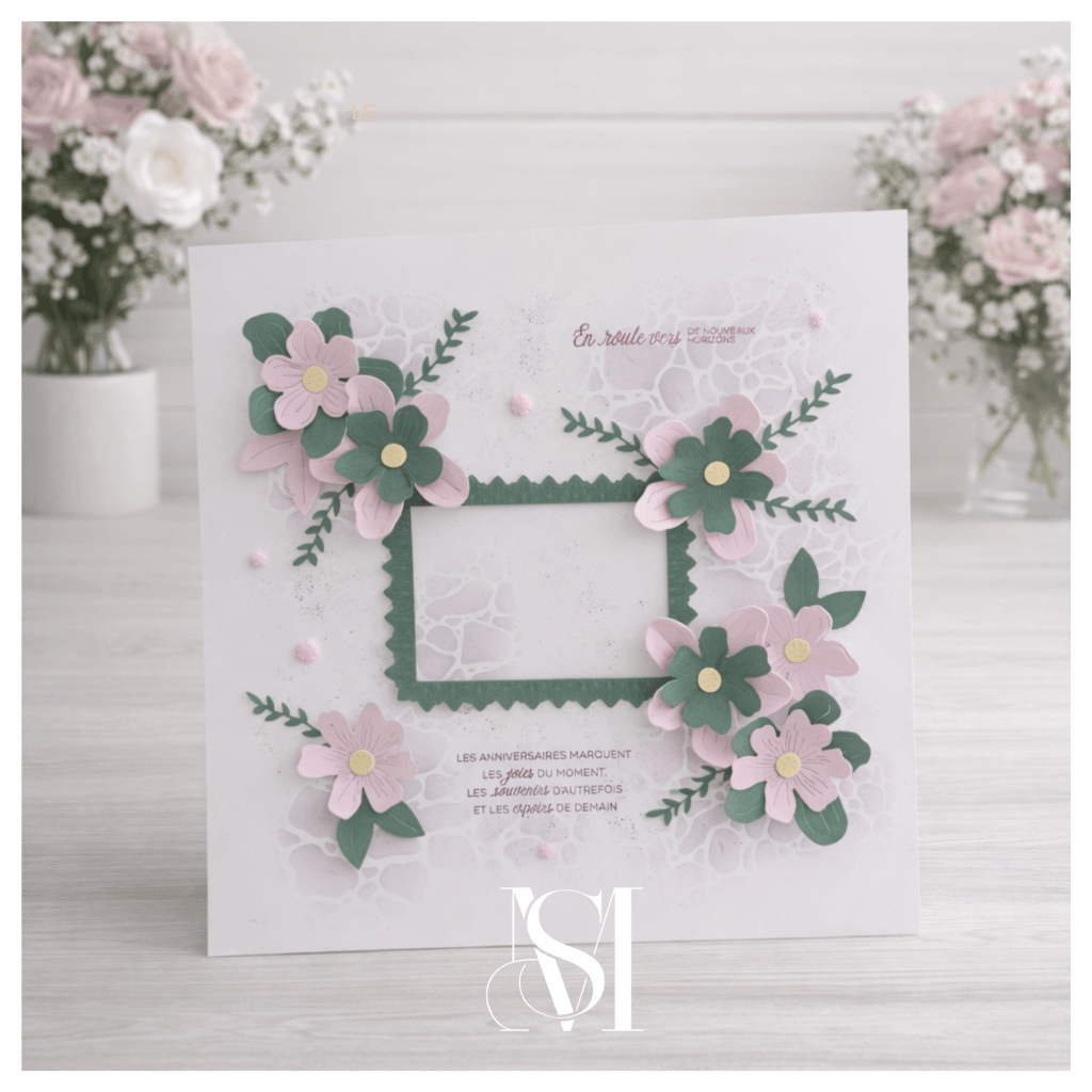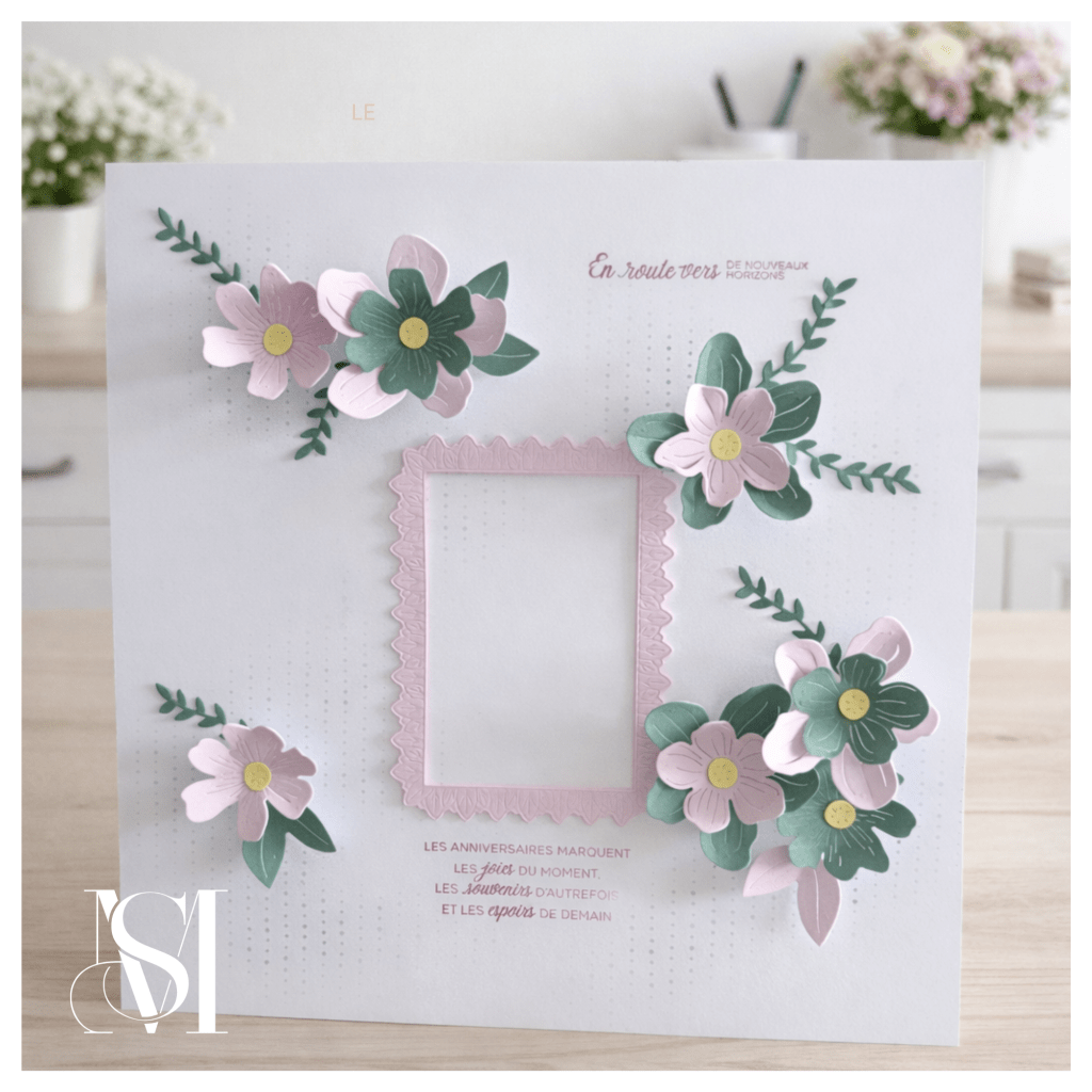 Autour de celui-ci, j’ai travaillé avec le set Tendresses fleuries pour créer de grandes fleurs généreuses. Elles apportent du volume, du relief et surtout une belle touche romantique à la page.
