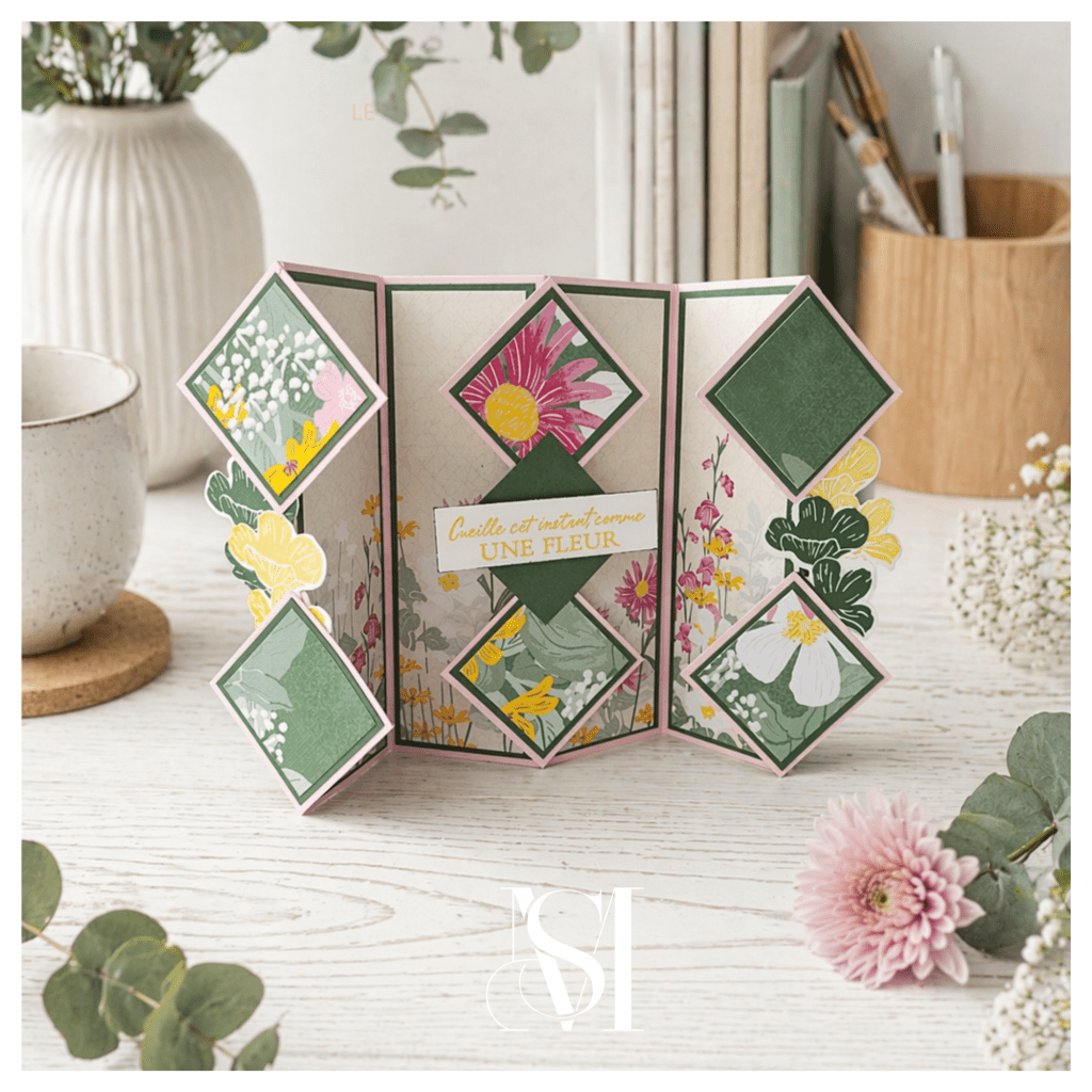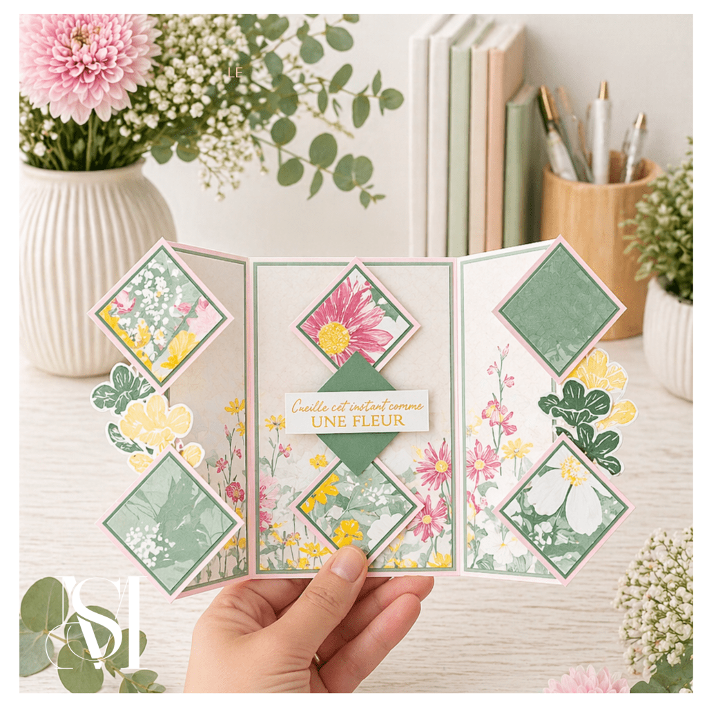 Aujourd’hui, je vous propose de plonger dans un projet plein de douceur et de poésie avec une carte triple diamant réalisée à partir de la magnifique collection Prairie de Velours.